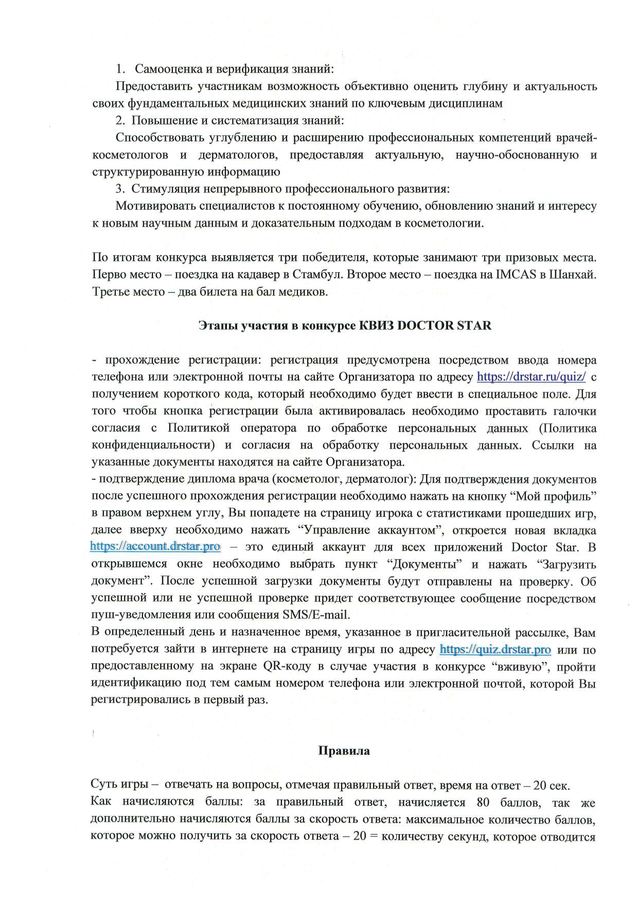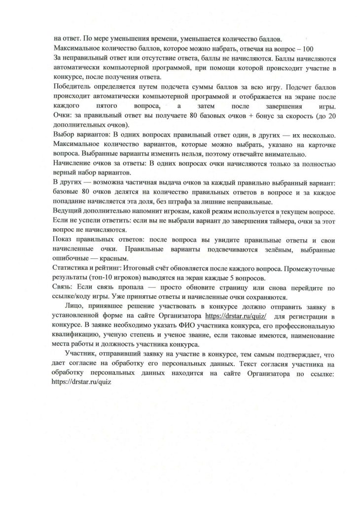 Правила конкурса квиз Doctor Star